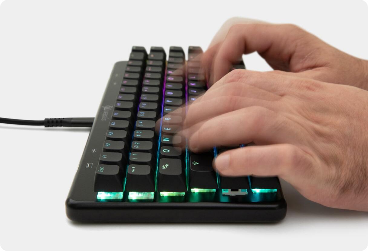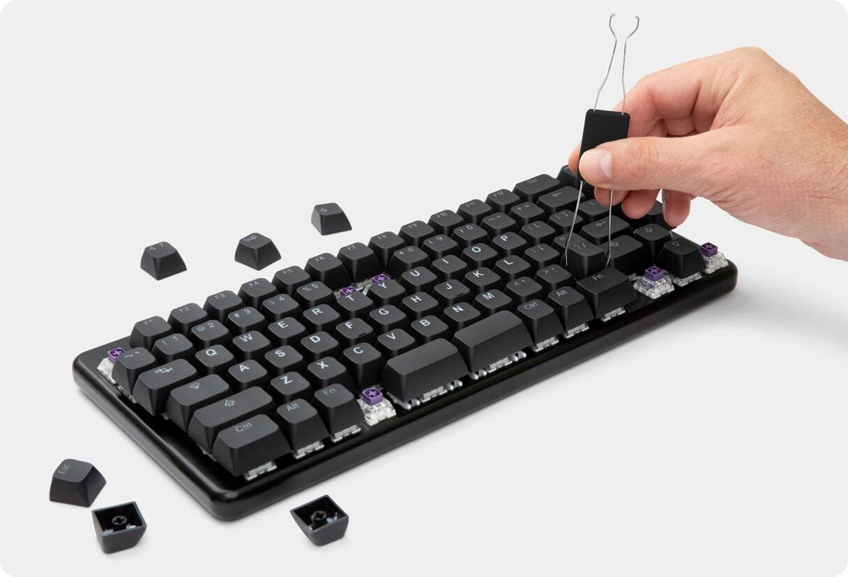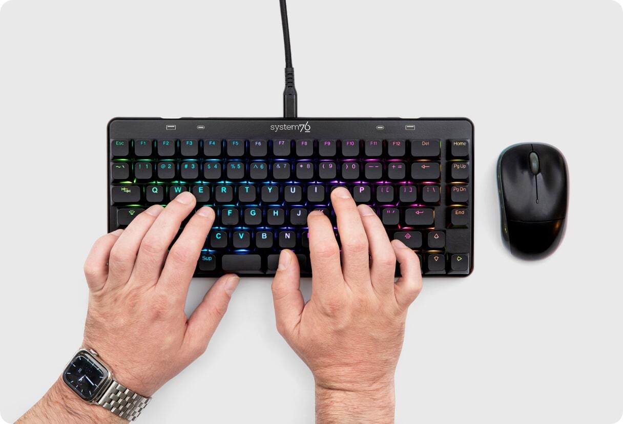 Compact 76% keyboard with high USB-C and USB-A transfer speeds. System76's customizable Launch mechanical keyboards are designed by keyboard lovers, for keyboard lovers. Features a split space bar for mapping essential keys to a more convenient spot. Configurable via the System76 Keyboard Configurator app and compatible with Linux, MacOS, and Windows.